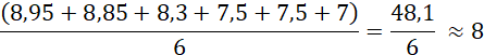 8,95 ; 8,8685 ; 8,28 3 ; 7,5 ; 7,5 ; 7