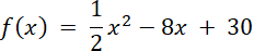 Wierzchołek funkcji w punkcie (x, - 2), a f(0) = 30
