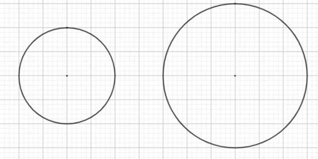 Narysuj w kratkach okręgi o promieniach 1 cm i 1 cm i 5 mm, które nie mają wspólnych punktów.