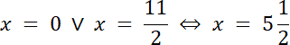 x = 0 ∨ 2x–11 = 0