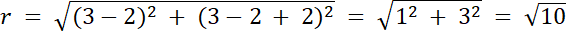 równanie okręgu: (x–3)2 + (y–1)2 = 10