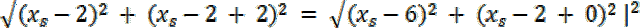 (xs–2)2 + xs2 = (xs–6)2 + (xs–2)2 |–(xs–2)2