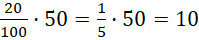 20% liczby 50 to piąta część liczby 50, czyli 50 : 5 = 10