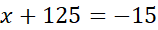 Aby otrzymać poprawne równanie, musisz do liczby 125 dodać niewiadomą, np. x, a po drugiej stronie znaku równości wpisać wynik, czyli (–15). Znasz jeden składnik i sumę równania. Odejmij od sumy ten składnik – otrzymasz brakującą liczbę.