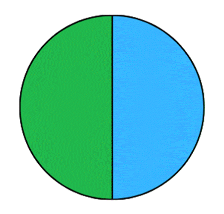 W tym zadaniu musisz podzielić koło na pół i pomalować każdą z połówek.