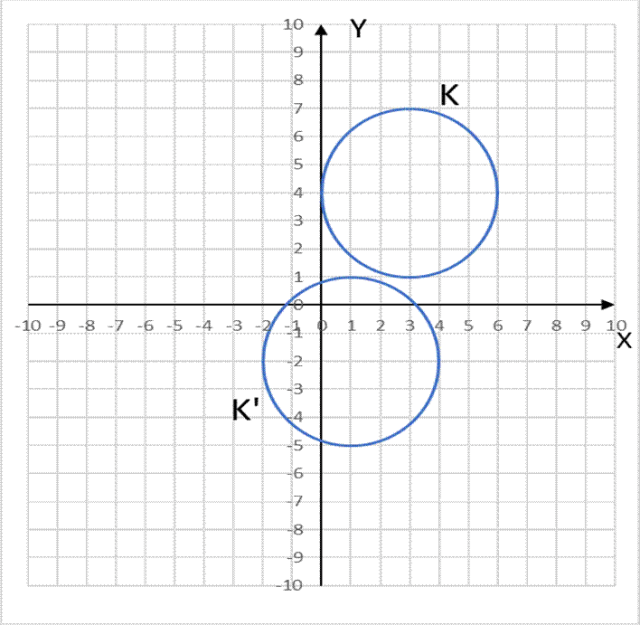 K: (x – 3)2 + (y – 4)2 = 9, P(2,1)