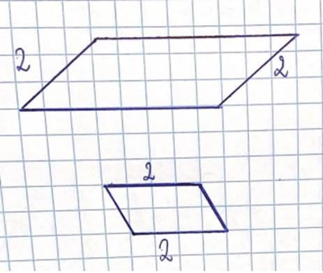 Narysuj w zeszycie w kratkę dwa różne równoległoboki, których bok będzie wynosił 2 cm.