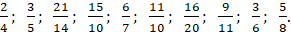 2 i 4 dzielą się przez 2; 21 i 14 dzielą się przez 7; 15 i 10 dzielą się przez 5; 16 i 20 dzielą się przez 2 lub 4; 3 i 6 dzielą się przez 3.