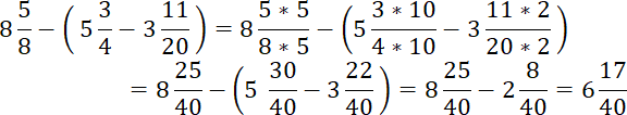 Zapisz działanie według polecenia. Wspólnym mianownikiem będzie liczba 40. Pamiętaj, aby wynik doprowadzić do postaci nieskracalnej.
