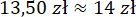 W tym zadaniu zaokrąglij kwotę 13 zł 50 gr do jednej złotówki.