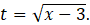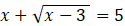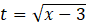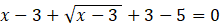 Określ dziedzinę równania, uwzględniając, że nie można pierwiastkować pierwiastkiem stopnia parzystego liczb ujemnych. Przekształć lewą stronę równoważnie, odejmując i dodając 3 oraz odejmij obustronnie 5. Wykonaj podstawienie