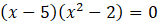 Aby rozwiązać równanie, przenieś wszystkie jednomiany na jedną stronę. Następnie pogrupuj wyrazy parami i z otrzymanego wielomianu wyłącz przed nawias czynnik x – 5. Otrzymany iloczyn zapisz w postaci alternatywy dwóch równań. Każde z równań rozwiąż niezależnie, a następnie zsumuj rozwiązania do jednego zbioru.