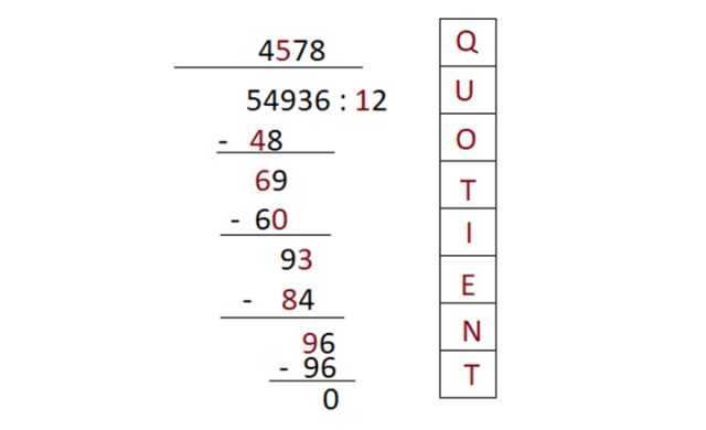 W tym zadaniu musisz uzupełnić luki w dzieleniu pisemnym. Następnie litery odpowiadające cyfrom na żółtym polu, położonym w tym samym wierszu wpisz w pola obok. Sprawdź znaczenie uzyskanego hasła.