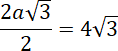 Na rysunku zaznaczona jest krótsza przekątna sześciokąta foremnego – ma ona długość odpowiadającą dwóm wysokościom trójkąta foremnego.