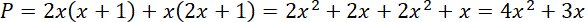 Pole wielokąta oblicz, dzieląc go na dwa prostokąty o wymiarach: (x + 1) na 2x oraz x na (2x + 1).
