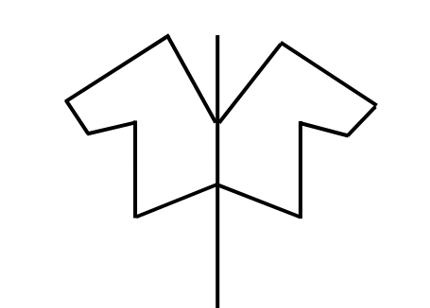 Prosta tworzy oś symetrii, czyli po jej drugiej stronie musi znajdować się lustrzane odbicie figury.