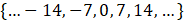 Wypisz wszystkie dodatnie i ujemne wielokrotności liczby 7.