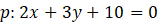 Określ, czy prosta p o równaniu 2x + 3y + 10 = 0 jest sieczną okręgu o równaniu