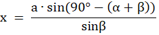 Przyjmujesz oznaczenia tak, jak na rysunku i korzystając z twierdzenia sinusów, wyznaczasz długość odcinka x. Kąt przy wierzchołku B oznaczasz przez γ.
