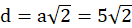d – krótsza przekątna trapezu (przekątna kwadratu)