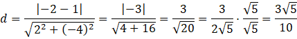 Aby obliczyć odległość prostych równoległych od siebie, skorzystaj ze wzoru: