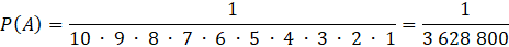 N = 10 ∙ 9 ∙ 8 ∙ 7 ∙ 6 ∙ 5 ∙ 4 ∙ 3 ∙ 2 ∙ 1