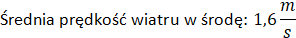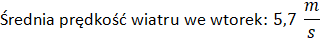Najmniejsza średnia prędkość wiatru była w środę, a największa we wtorek. Różnica tych prędkości wynosi