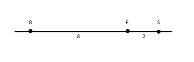 Punkty P, R i S leżą na jednej prostej, punkt P leży pomiędzy pozostałymi punktami.