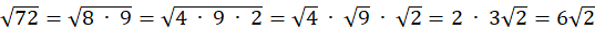 Korzystając z faktu, że pierwiastek iloczynu to iloczyn pierwiastków, rozbij wyrażenia pod pierwiastkami na iloczyny i wyciągnij czynniki przed pierwiastki: