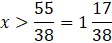 38x > 55 /:38