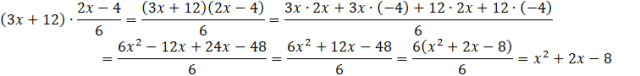 Kiedy mnożysz nawiasy przez siebie, musisz wymnożyć każdy wyraz jednego nawiasu przez każdy wyraz drugiego nawiasu. Jeśli powstałe wyrazy składają się z tych samych zmiennych w tych samych potęgach to musisz je dodać do siebie, aby uprościć wyrażenie. Po uproszczeniu liczniku musisz wyłączyć przed nawias wspólny czynnik, aby skrócić z nim mianownik.