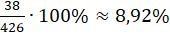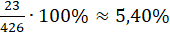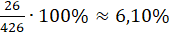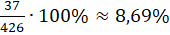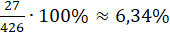 Zauważ, że wszystkich liter w tekście jest 426. Ilość liter: a, e, i, n, o, r, t oraz z możesz odczytać z tabeli. Aby obliczyć, jaki procent jednej liczby stanowi druga liczba zapisz jaką część pierwszej liczby stanowi druga i pomnóż przez 100%: