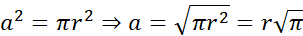 W tym zadaniu zapisz jaką długość ma bok kwadratu, który ma takie samo pole jak koło o promieniu długości r.