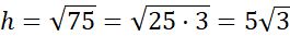 Przyjmij oznaczenia jak na rysunku. Oblicz długość h. Skorzystaj z twierdzenia Pitagorasa a2 + b2 = c2, gdzie a i b to długości przyprostokątnych, a c to przeciwprostokątna trójkąta prostokątnego.