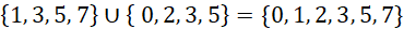 Podane są elementy zbioru, który powstał z sumy zbiorów: 0, 1, 2, 3, 5, 7