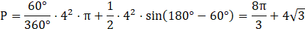 Trójkąt ABC jest oparty na średnicy, zatem jest prostokątny. Pole wycinka o kącie środkowym.