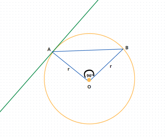 Dany jest okrąg o środku O. Poprowadzono cięciwę AB, tak że jeden z kątów trójkąta AOB ma miarę