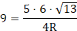 Wyznacz promień dla okręgu opisanego i pole trójkąta ABC.