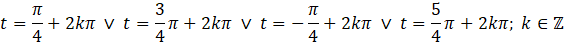 Rozwiąż równanie na zmiennej t. W tym celu odpowiednio spierwiastkuj powstałe równanie stopnia drugiego i rozwiąż otrzymane dwa równania stopnia pierwszego.