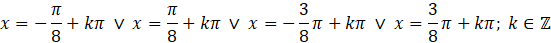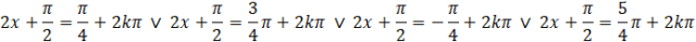 Oba równania połączone są spójnikiem „lub”. Finalnym wynikiem jest zatem suma rozwiązań obu z nich: