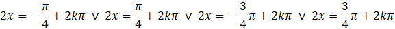 Znajdź dwa przykładowe rozwiązania tego równania, mieszczące się w przedziale o długości 2π: