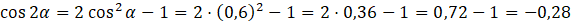 Mając dane cos α = 0,6, wyznacz cos 2α.
