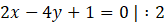 Mając dane proste l: 2x – 4y + 1 = 0 oraz k: x – 2y – 1 = 0, wyznacz dystans pomiędzy nimi, wcześniej wykazując ich równoległość.