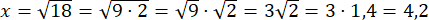 Wyłącz czynnik przed znak pierwiastka – jeden z czynników musi być liczbą 2, a następnie pomnóż przybliżenie pierwiastka przez liczbę stojącą przed nim.