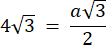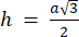Na początku oblicz długość boku trójkąta, wykorzystując wzór na wysokość w trójkącie równobocznym