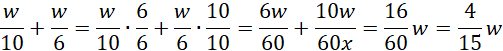W tym zadaniu musisz zapisać równanie opisujące wspólną pracę pomp A i C przez godzinę, odczytując z tabeli zamieszczonej obok, że pompa A potrzebuje 10 godzin na wykonanie danej pracy, a pompa C potrzebuje na to 6 godzin. Następnie zapisz odpowiednią proporcje, dzięki której obliczysz, ile czasu zajęłoby im wykonanie tej pracy, gdyby pracowały wspólnie.