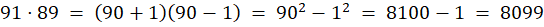 Rozpisz obie liczby jako 90 + 1 i 90 – 1. Skorzystaj ze wzoru