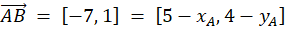 Wyznacz współrzędne punktu A, wiedząc, że współrzędne wektora AB opisuje wzór