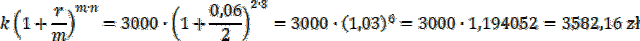 Ile wyniesie kapitał końcowy lokaty na 3 lata oprocentowanej na 6% w skali roku, jeśli kapitalizacja odsetek następuje co pół roku i wpłacono 3000 zł?