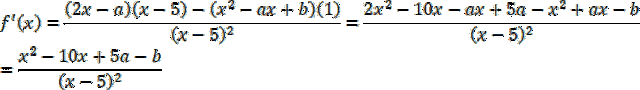 Najpierw wyznacz pochodną funkcji f oraz określ dziedzinę tej funkcji, oraz jej pochodnej. Zauważ, że skoro funkcja osiąga ekstremum w punkcie x0, to wartość pochodnej w tym punkcie wynosi 0. Wyznacz z równania zależność między wartościami a i b. Następnie określ zależność między tymi parametrami, wiedząc, że dla wskazanego punktu funkcja przyjmuje wartość równą 1. Z otrzymanego układu równań oblicz szukane liczby a i b.